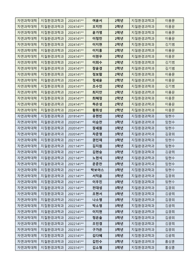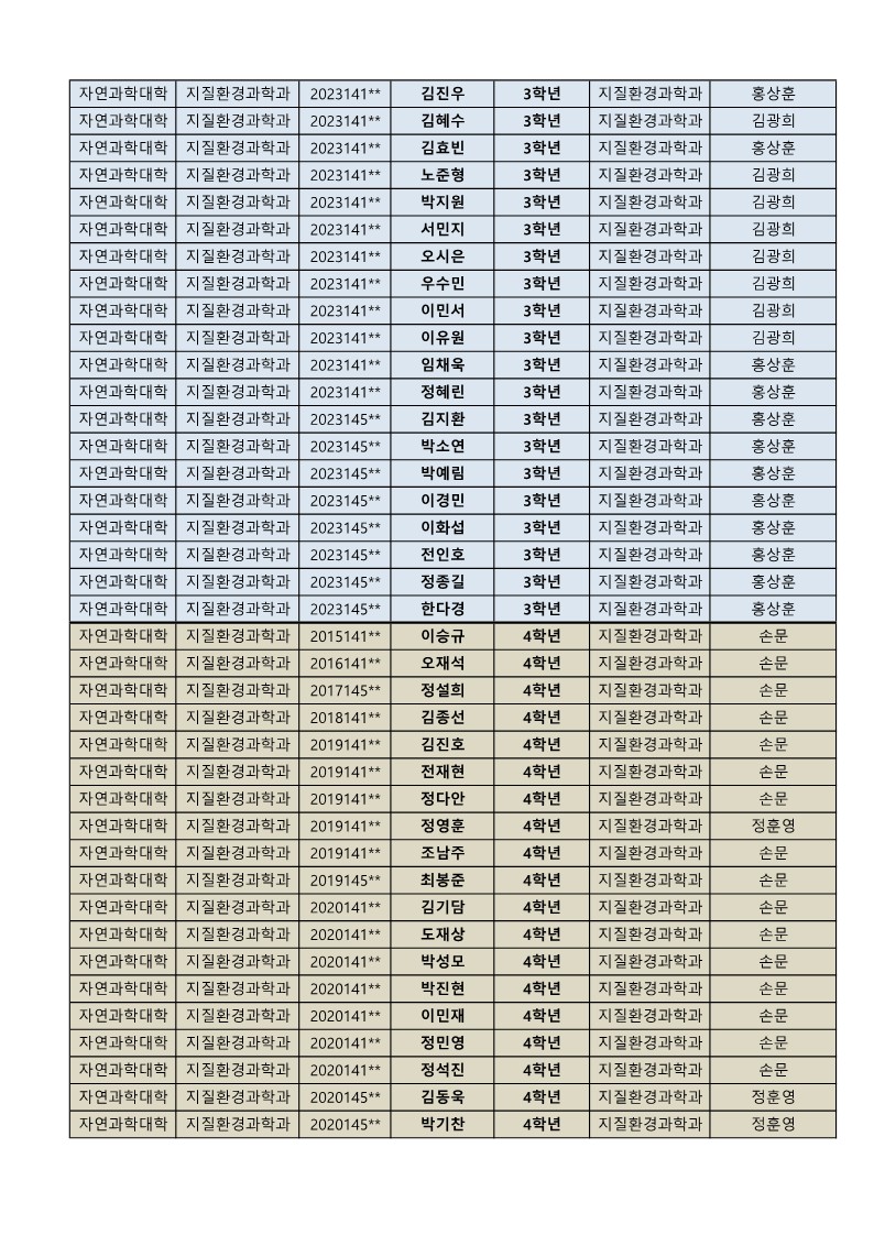 ③ 배정된 지도교수, 상담시간/장소, 전달사항 등을 확인한다.