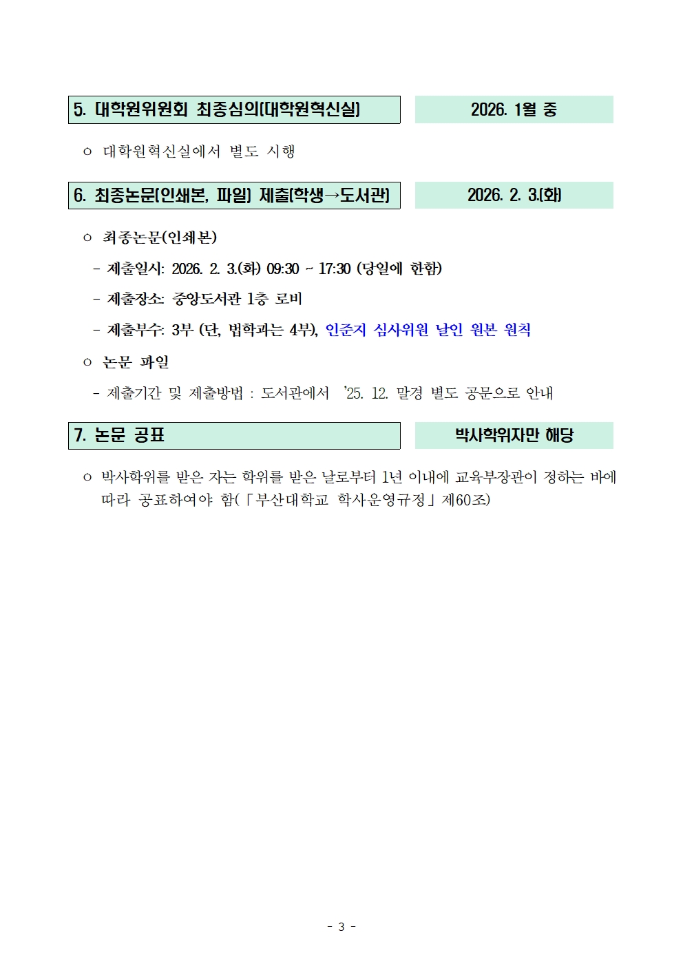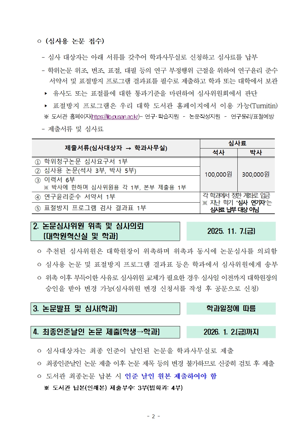 2025학년도 대학원 전기 학위청구 논문심사 계획