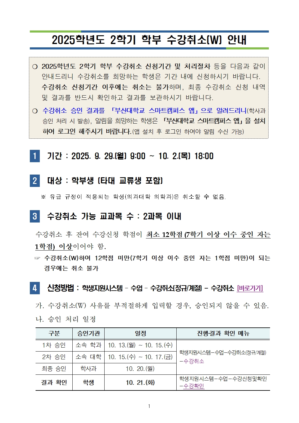 2025학년도 2학기 학부 수강취소(W)안내
