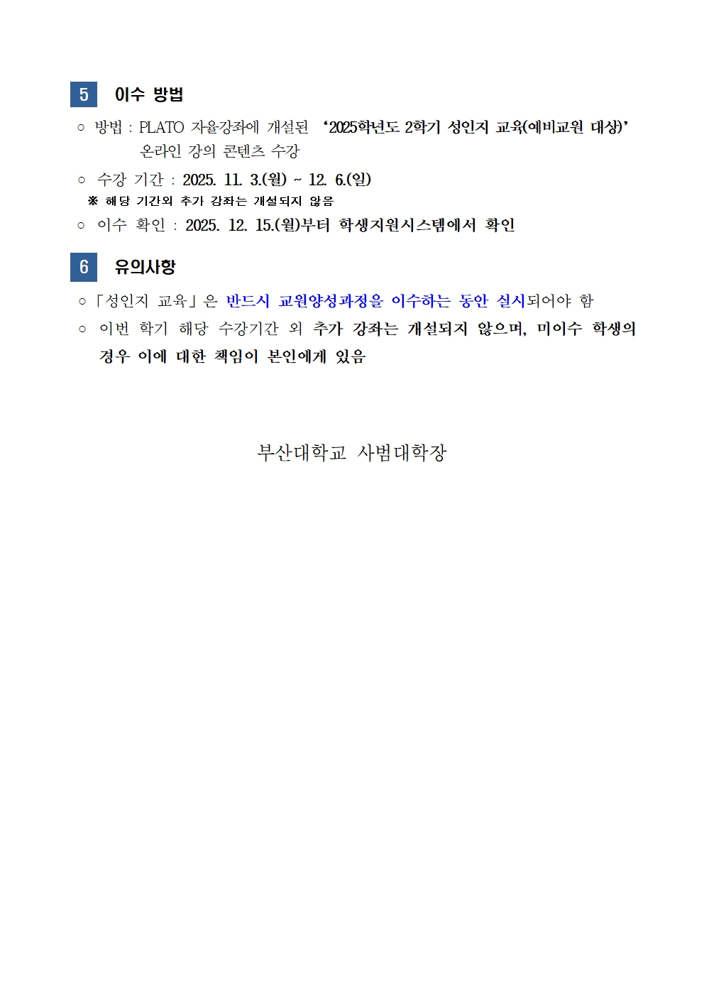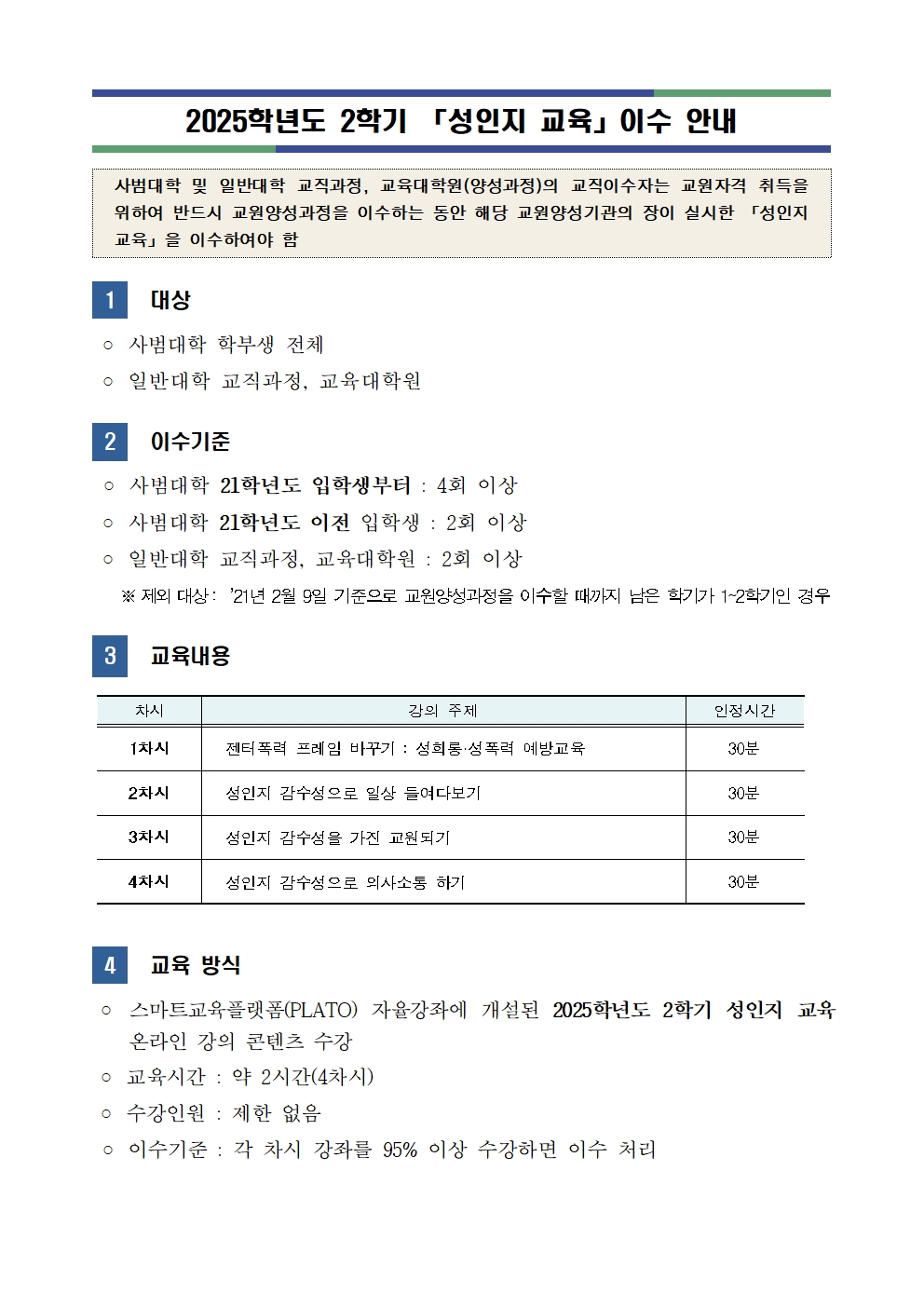 2025학년도 2학기 [교직 적성 및 인성 검사] 결과, 교육특강, 추가검사 일정 안내