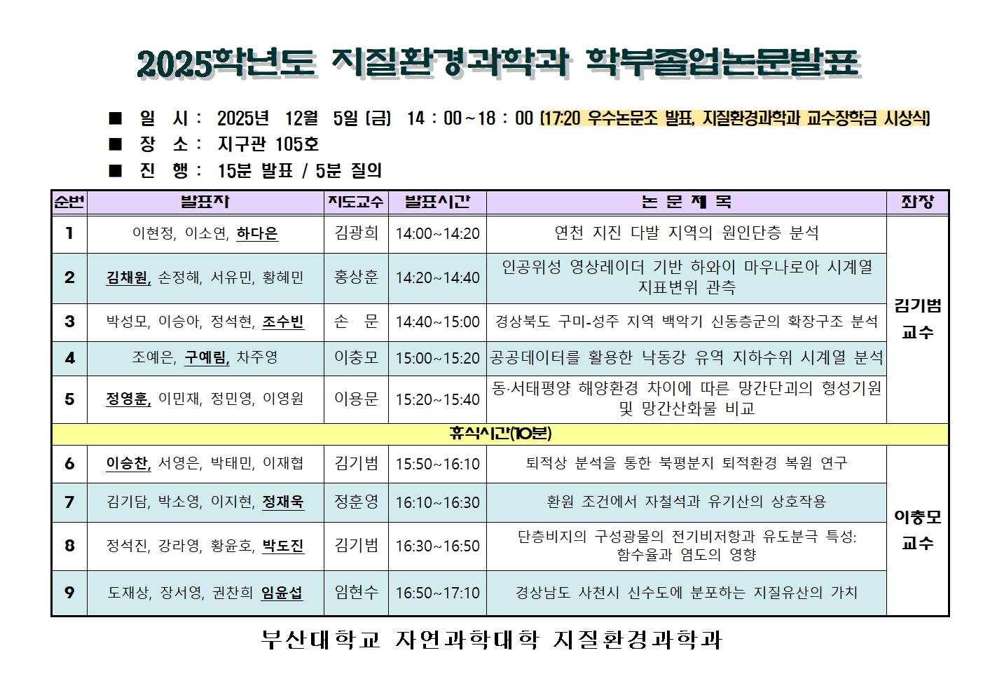 1847 2025학년도 지질환경과학과 전체야외학술답사 일정- 추가 안내 장주연 2025.09.29 0 632