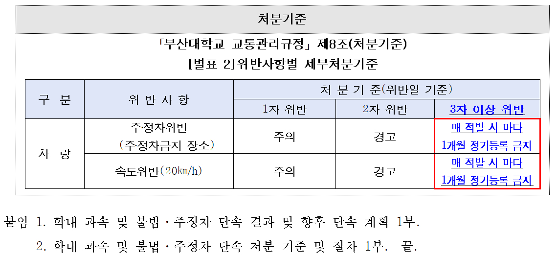 붙임2_학내 과속 및 불법ㆍ주정차 단속 처분 기준 및 절차.hwp